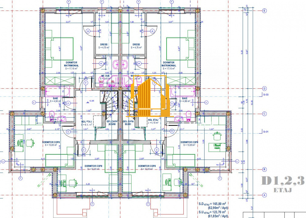 ✅ Etaj: 3 dormitoare dintre care unul este matrimonial (cu baie și dressing), baie comună și hol de acces