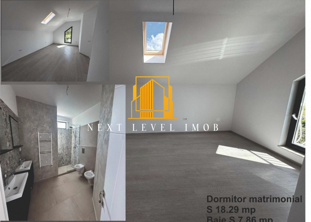La etaj regăsim 3 dormitoare spațioase, o baie modernă, iar dormitorul matrimonial beneficiază de baie proprie.